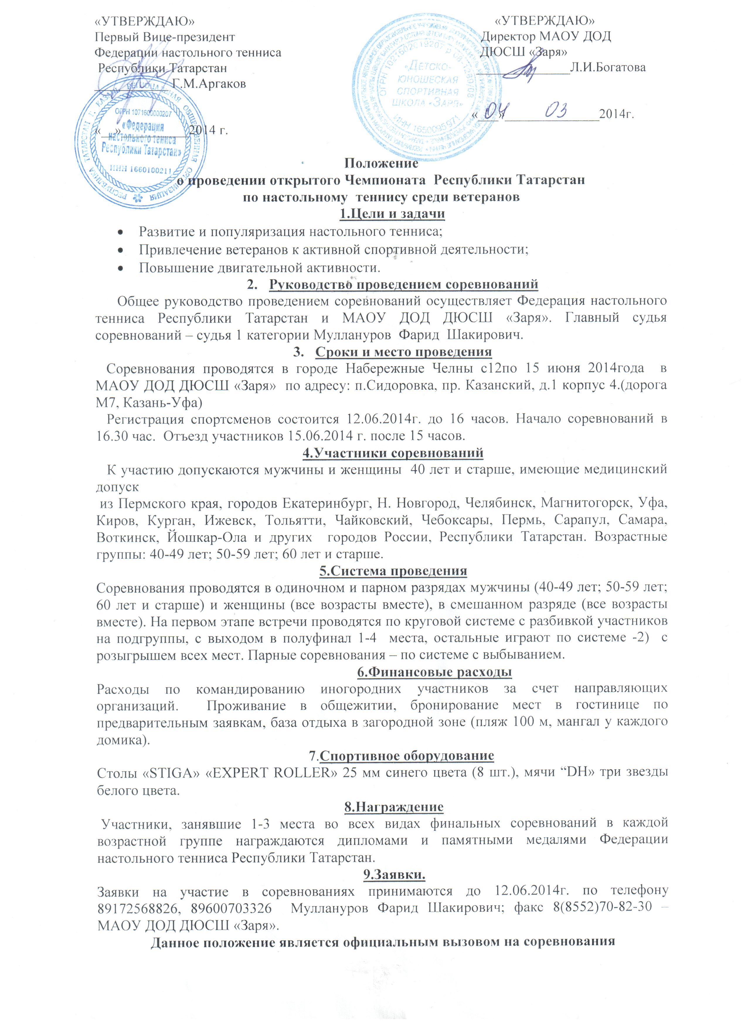 Положение о проведении Чемпионата Республики Татарстан среди ветеранов