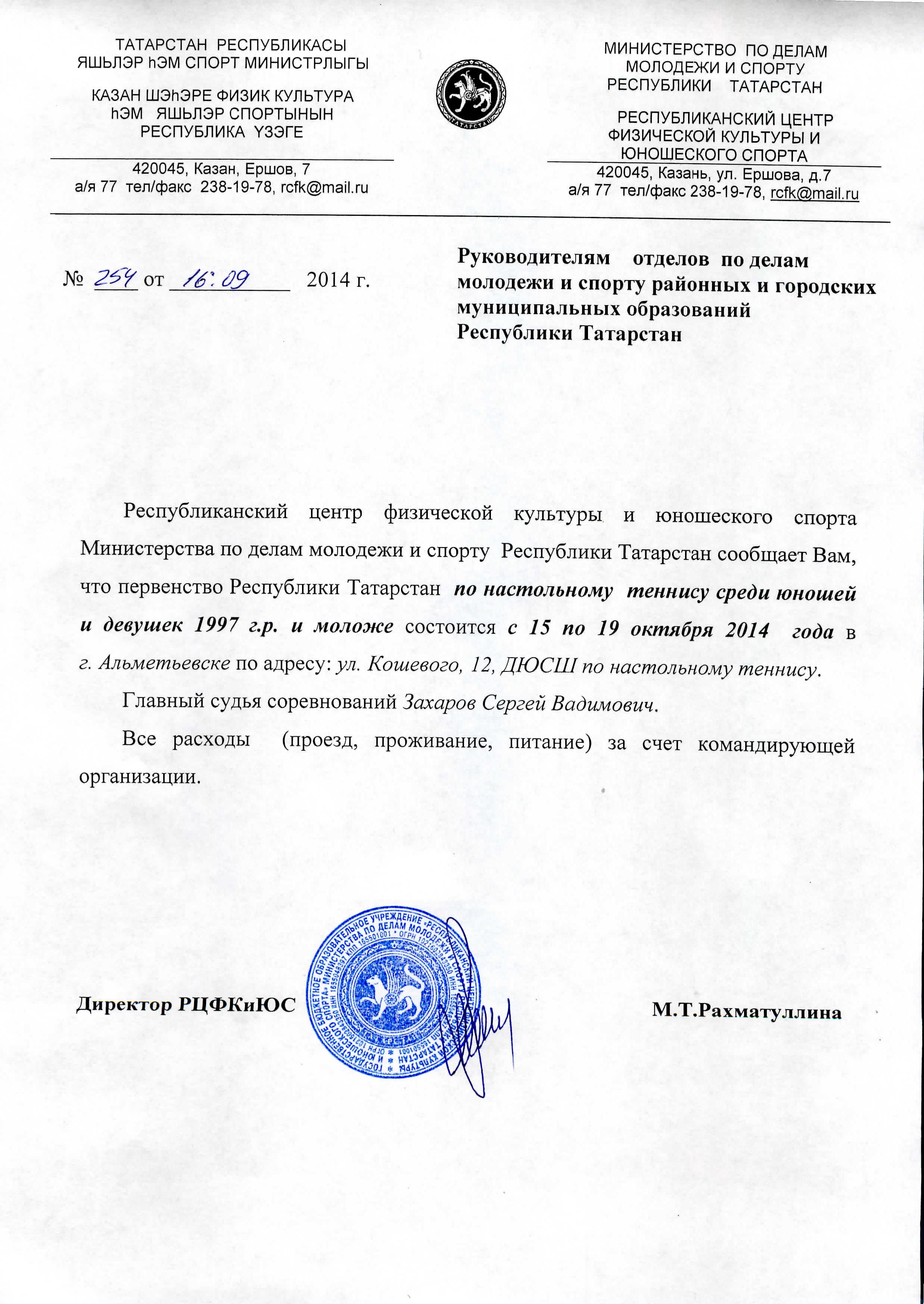 Сроки проведения Первенства Республики Татарстан среди юношей и девушек 1997 г.р.