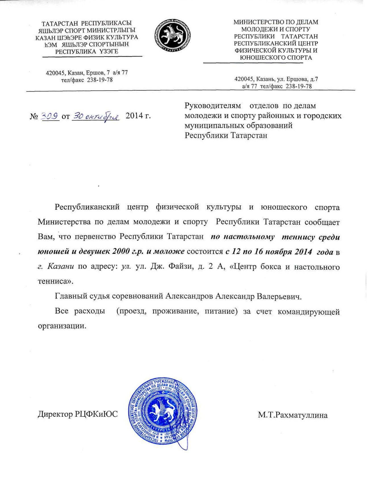 Сроки проведения Первенства Республики Татарстан среди юношей и девушек 2000 г.р. и моложе